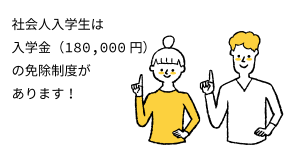 安心して学んでいただくために、社会人入学生(※)は入学金(180,000円)の免除制度があります。