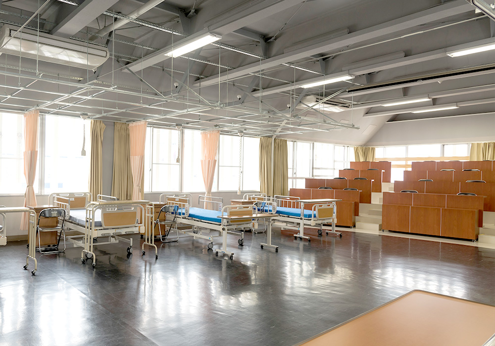 看護技術の習得を目指し講義や演習をします。医療施設等で使用する看護に必要な器具、設備を備え、医療現場に近い演習を行い、看護実践力を磨きます。