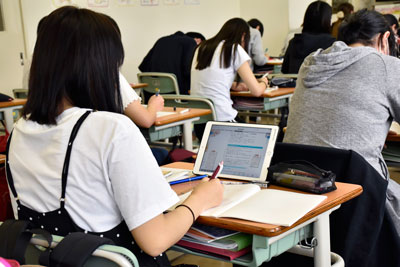 デジタル教科書は、3D映像の動画や図や写真などが多く視覚的効果があります。また、国家試験問題が内蔵されており、授業毎に振り返っています。教員が白板に投影したデジタル教科書にハイライトを入れ説明している時に、学生は自分のデジタル教科書へ同じようにハイライトを入れることもできます。