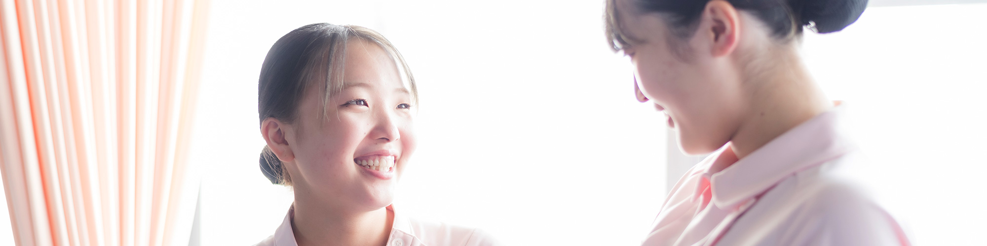 基礎看護技術で基礎的なバイタルサインの測定と観察を学びます。 バイタルサインとは人が生きていることを示す基本的な徴候・所見のことです。一般的には体温、脈拍、血圧、呼吸の4つです。看護技術の演習において学生同士で血圧測定をしている場面です。